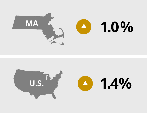 In the fourth quarter of 2025, Massachusetts real gross state product (GSP) increased at an annual rate of 1.0 percent, according to MassBenchmarks, while U.S. GDP increased at an annual rate of 1.4 percent, according to the U.S. Bureau of Economic Analysis (BEA). In the third quarter of 2025, Massachusetts and U.S. GDP grew at annual rates of 3.3 percent and 4.4 percent, respectively, according to the BEA.